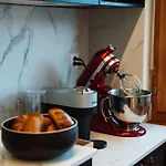 Guests can enjoy the convenience of a fully furnished kitchen with a microwave, an electric kettle, and a refrigerator for self-catering needs.
